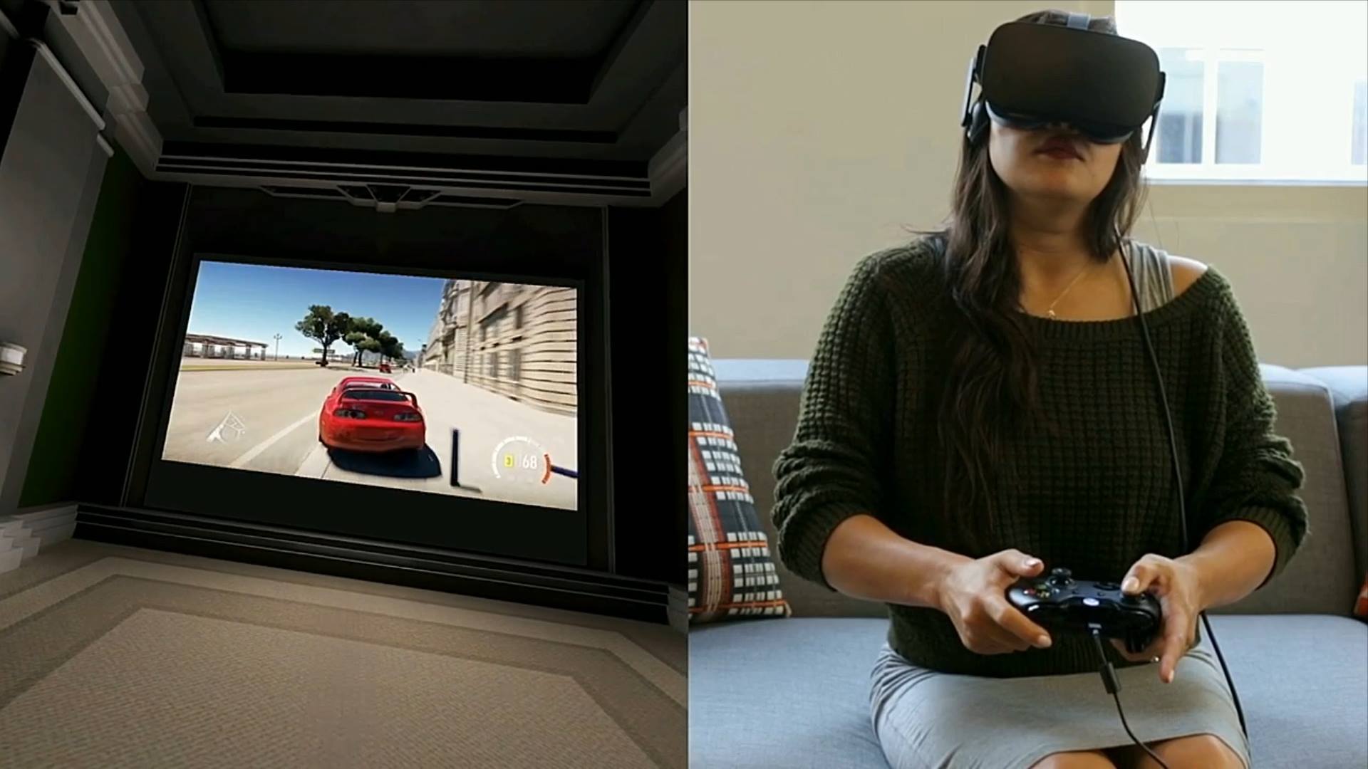 Phil Spencer betritt die Bühne und gibt jede Menge Infos zu der Partnerschaft. Jede Oculus Rift wird nun auch mit einem Xbox One Controller ausgeliefert, und alle Spiele lassen sich dann mit diesem über die Brille spielen. Dabei werden die Spiele von einem Windows 10 Rechner an die Brille gestreamt, und wie schon gesagt mit dem Xbox One Controller gespielt. Doch damit nicht genug, lassen sich auch Xbox One Spiele direkt von der Konsole auf die Brille Streamen. So kann man nicht nur die VR Spiele auf der Brille genießen, sondern auch alle anderen Xbox One und Windows 10 Spiele.