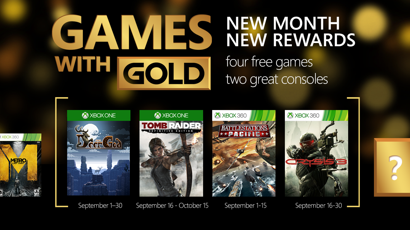 Das monatliche Games with Gold-Programm für Xbox Live Goldmitglieder, die entweder eine Xbox One oder Xbox 360 oder wahlweise auch beides besitzen, bekommen auch im Monat September wieder je zwei kostenlose Spiele von Microsoft spendiert. Welche das sind, lest ihr hier.