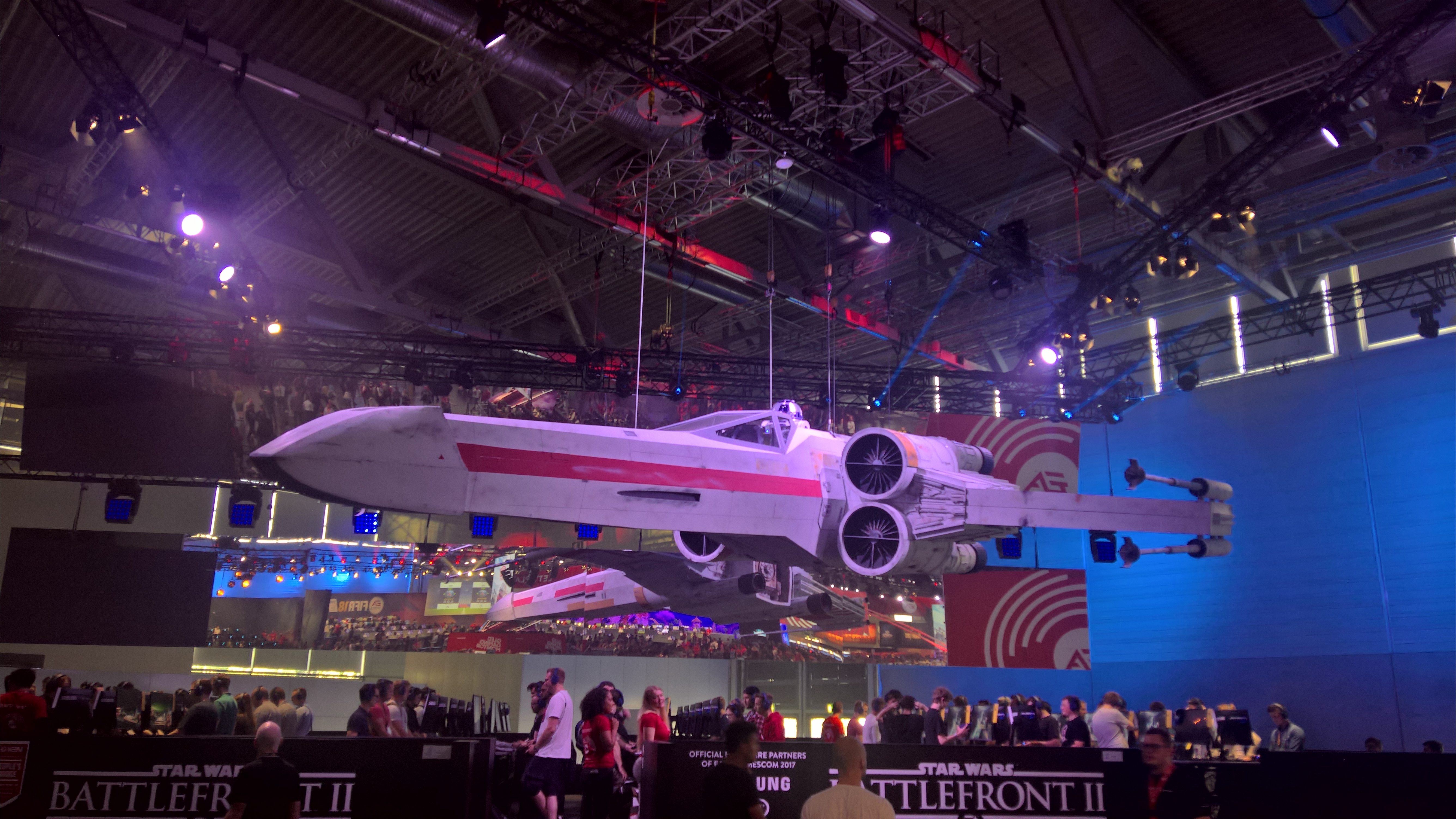 In diesem Jahr musste die Koelnmesse sogar eine Halle mehr eröffnen, da man einfach nicht genug als Aussteller bekommt. Gerade Electronic Arts haben es dieses Jahr ordentlich krachen lassen und keine Kosten und Mühen gescheut, um ihr Spiele-Line-up zu präsentieren. In Halle 1 hat man sich komplett eingemietet. In Halle 6 hatte man einen gigantischen Stand, der die Hälfte der Halle einnahm. Hier gab es neben den Blockbustern wie Battlefield 1: In the Name of the Tsar, Need for Speed Payback oder Star Wars: Battlefront II auch noch diverse Kracher wie FIFA 18 und die mobile Sparte von EA, neben denen die TIE-Fighter, X-Wings und Co. aus Star Wars in einem Maßstab 1:2 hingen. Auch bei Need for Speed Payback konnte man einige Boliden aus dem Spiel im Original betrachten.