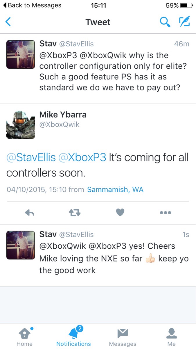 Jetzt gab Microsofts Mike Ybarra über Twitter bekannt, dass man nicht nur die Tastenbelegung des Elite Controllers unterschiedlich belegen kann, sondern auch die der konventionellen Xbox One Controller, die jeder von euch besitzt. Wie das dann im Endeffekt von statten geht, ist noch unklar. Ein nettes Feature dennoch.