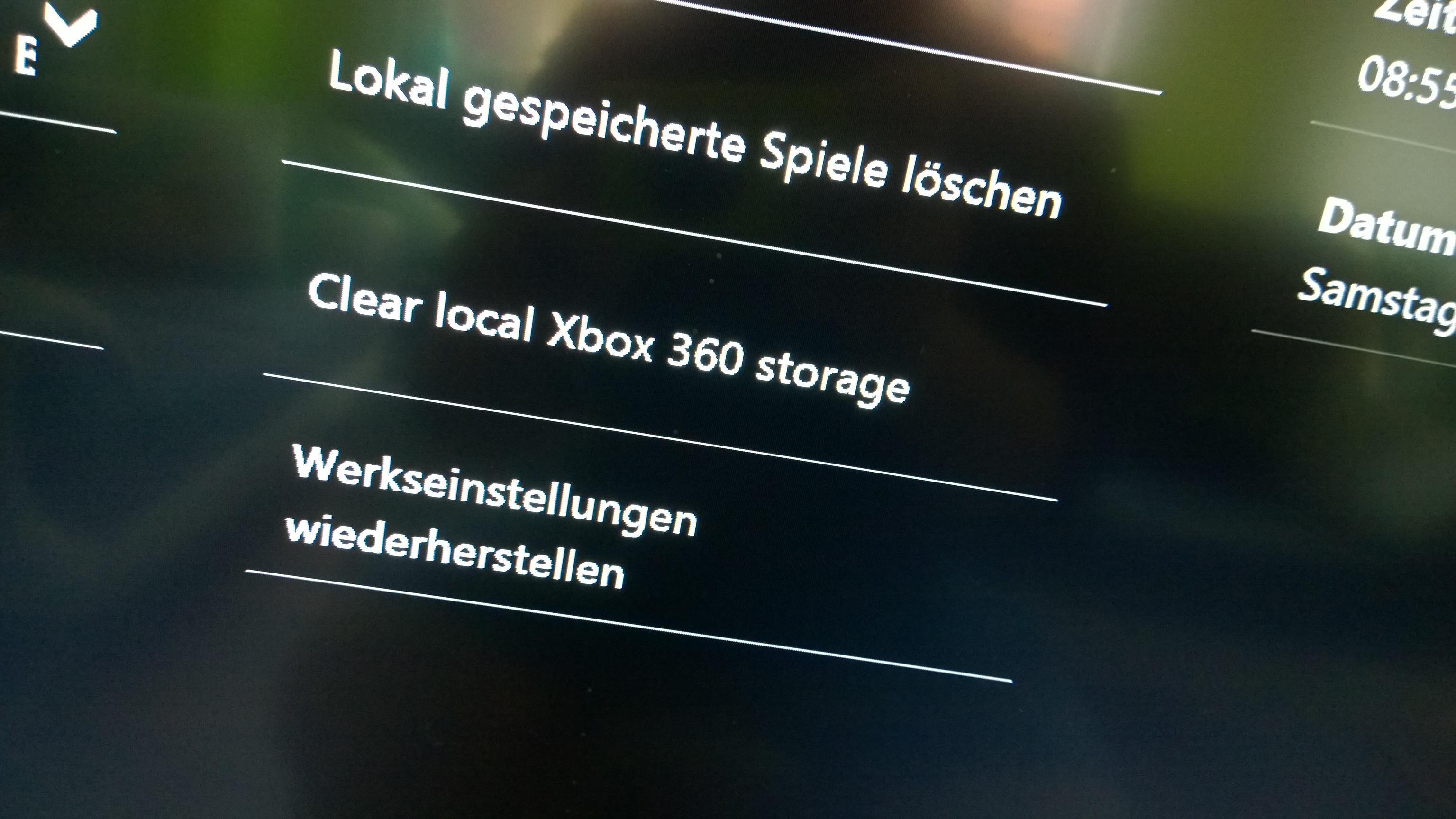 Alle gespeicherten Xbox 360-Spiele und Profile werden von dieser Xbox One-Konsole gelöscht. In der Cloud gespeicherte Spiele werden nicht entfernt und synchronisiert, wenn Sie das nächste Mal spielen. Ein Neustart ist erforderlich“