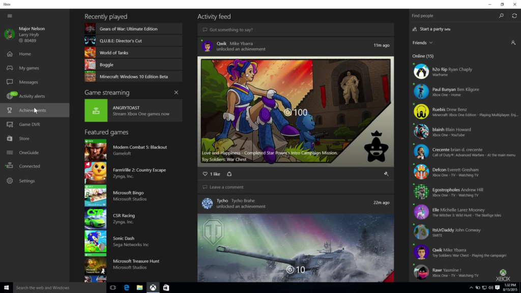 Seid dem Launch von Windows 10 verschmilzt das neue Betriebssystem auch mit allen anderen Plattformen von Microsoft, so auch die Xbox-Konsolen. Die damit verbundenen Xbox Live-Funktionen bieten alle gewohnten Features, wie man sie von Xbox One kennt, nur das man sie auch auf seinem Windows 10– oder Windows 10 Mobile-Gerät nutzen kann. Dank der vorinstallierten Xbox App habt ihr alle Freiheiten, wie auch auf eurer Xbox One – egal ob Freunde verfolgen, Aktivitäten einsehen, Nachrichten empfangen und versenden, alleine Xbox-Infos abrufen, Spiele aufnehmen oder sogar Spiele auf ein anderes Windows 10-Gerät streamen.